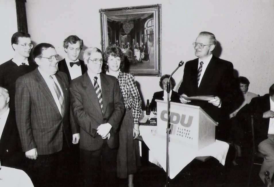 Am 10. Januar 1988 war es dann soweit. Der erste Neujahrsempfang fand im Hotel „Zum Adler“ statt. Festredner war der damalige Oberkreisdirektor des Märkischen Kreises, Dr. Bernhard Schneider, der zum Thema sprach: „Der Märkische Kreis - ein Mitgarant der kommunalen Daseinsvorsorge.“ Den CDU-Bürger-Ehrenpreis erhielten der Geschichts- und Heimatverein sowie der Verkehrsverein. Fünf jugendliche Nachwuchssportler der LG Plettenberg/Herscheid wurden für ihre besonderen Kreistitel-Leistungen geehrt. Musikalisch umrahmt wurde das Programm von Ulrich Baron am E-Piano.