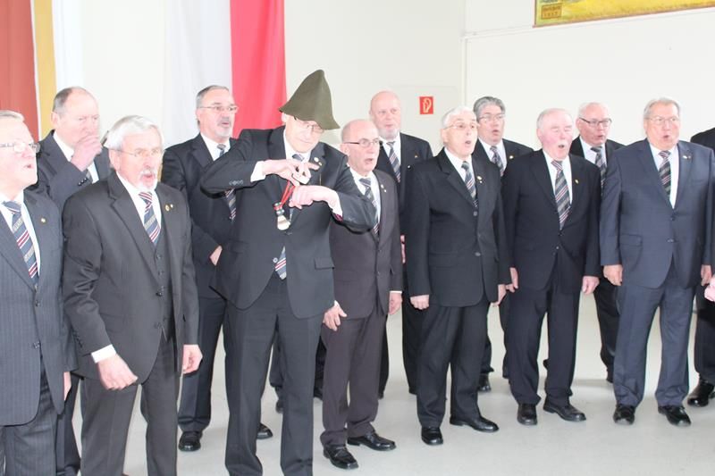 Erwähnung muss in jedem Fall auch die musikalische Gestaltung des Vormittages finden. Diese wurde nämlich geleistet von den Männergesangvereinen aus Hüinghausen und Rärin. Wer hier trägen und langatmigen männlichen Gesang erwartet hatte wurde enttäuscht. Die Chöre nutzen ihren Auftritt beim Neujahrsempfang, um die Vitalität und Spritzigkeit ihrer Musik unter Beweis zu stellen. So wurde der sonnige Sonntagmorgen mit einem tollen Lied bedacht. Später schien es auch so, als hätten sich die Sänger mit Bodo Löttgen abgesprochen, denn mit ihrer gesungenen und geschauspielerten Hommage an den bayrischen Schnupftabak brachten sie weitere Elemente aus dem Freistaat in die Veranstaltung ein. Der krönende Abschluss wurde den Gästen in Form der gesungenen und original getreuen Intonation der Froschhochzeit präsentiert.