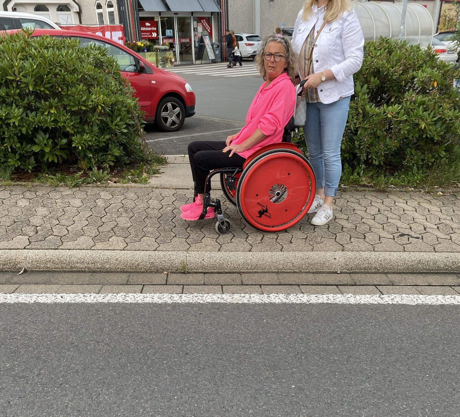Bei manchen Geschäften muss man über einige Stufen um in den Laden zu gelangen. Das ist eigenständig dann leider auch nicht möglich. Manchmal sind Rampen vorhanden, diese sind dann aber oft zu steil ausgeführt. Hilfreich sind automatische Türöffner.